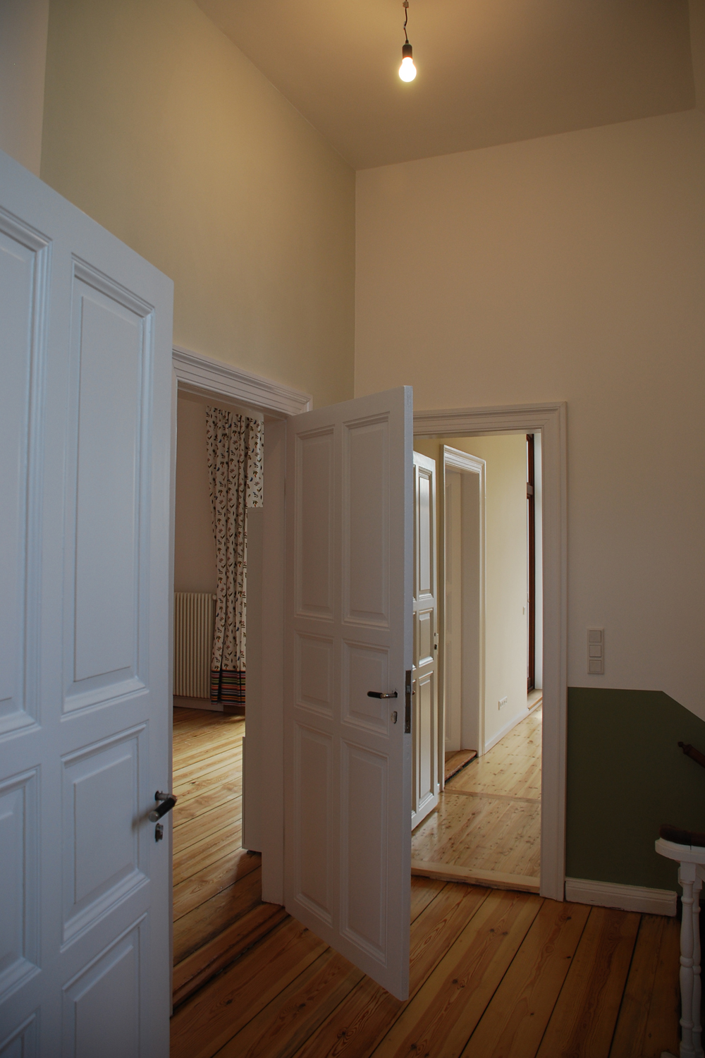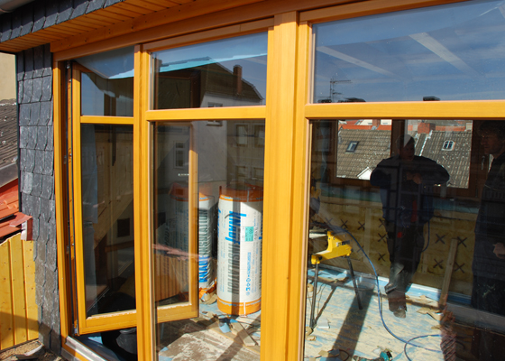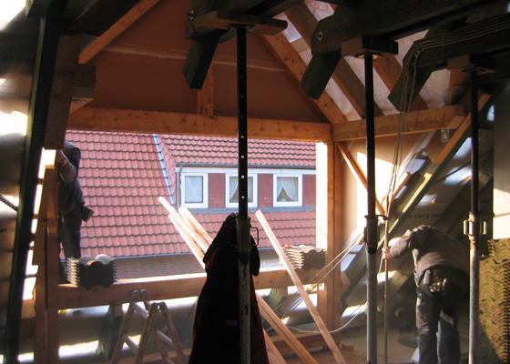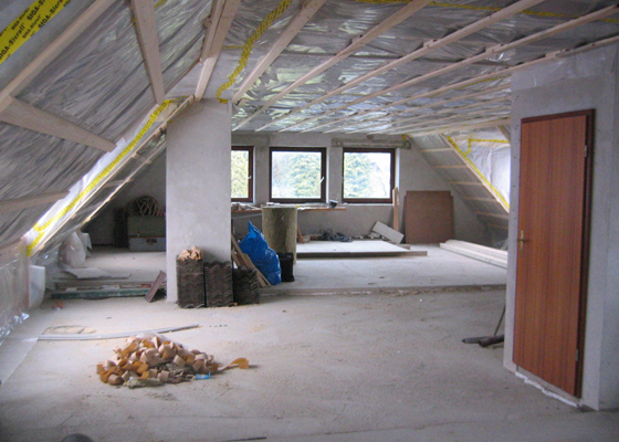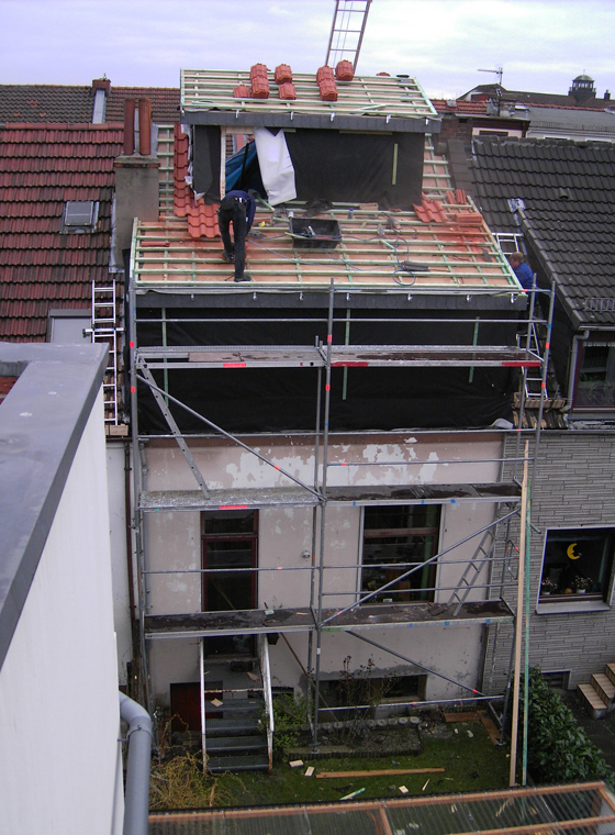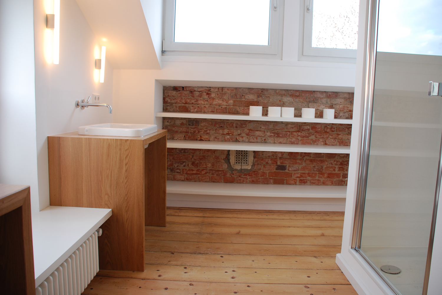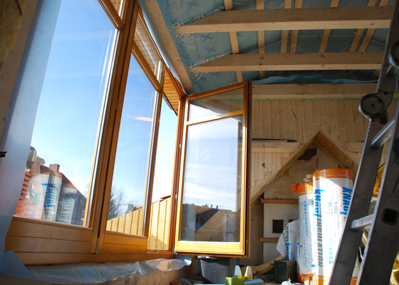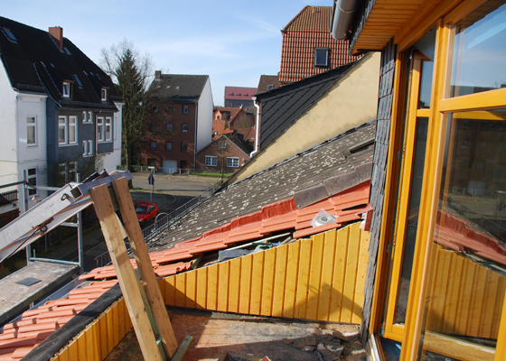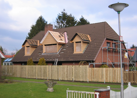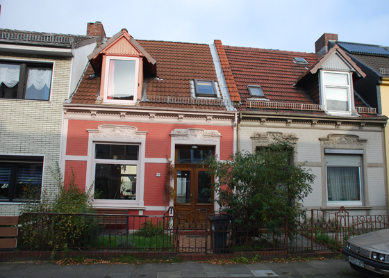 Dachaufstockung eines kleinen Reihenhauses in Bremen / Walle, durch je eine Gaube an der Strassen- und Gartenfassade. Zusätzlich wurde im Dachgeschoss durch das anheben eines Dachausschnittes ein weiterer Raum geschaffen, sowie eine Dachterrasse mit Morgensonne. |